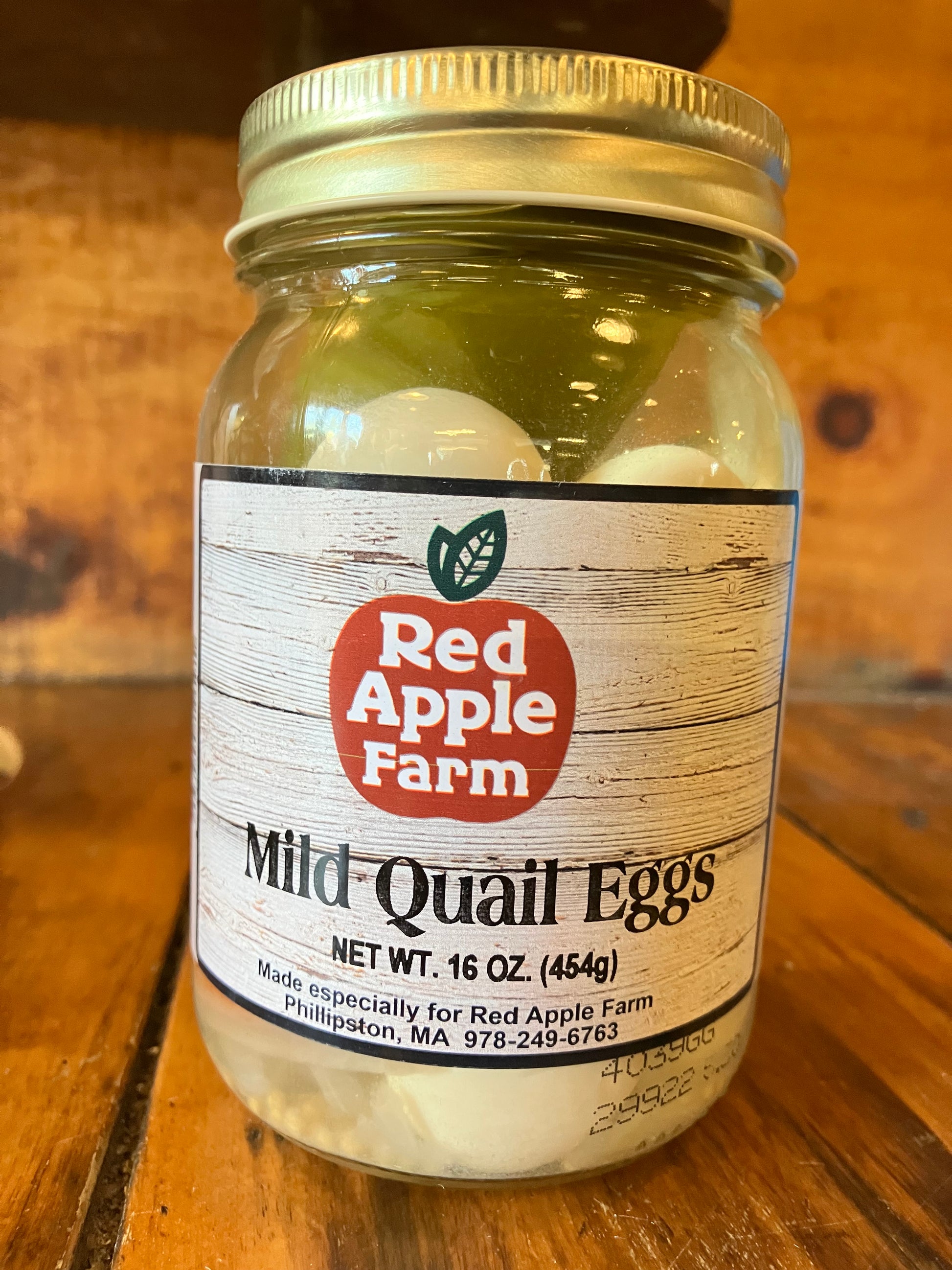Quail eggs, water, vinegar, onion, jalapenos, carrots, salt, mustard seed